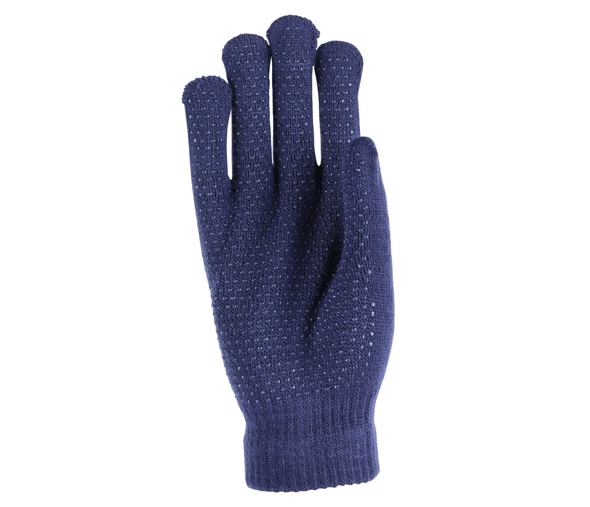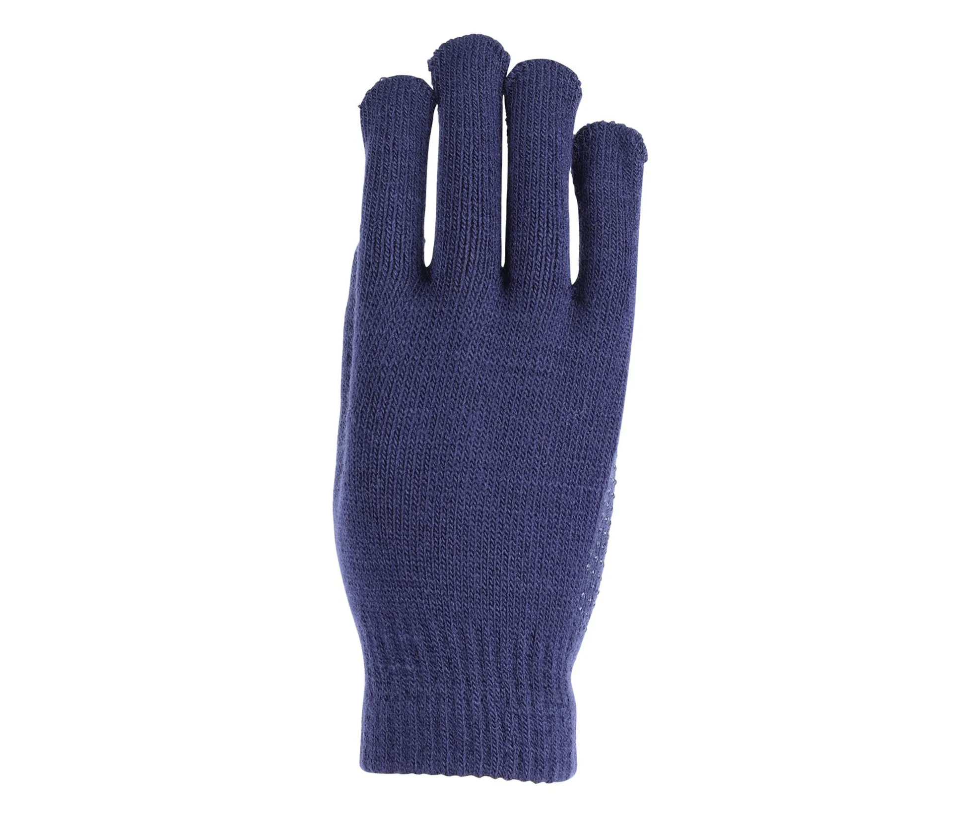 Stretchy knitted riding gloves with rubber pimple palms for grip and generous wrists for extra warmth.