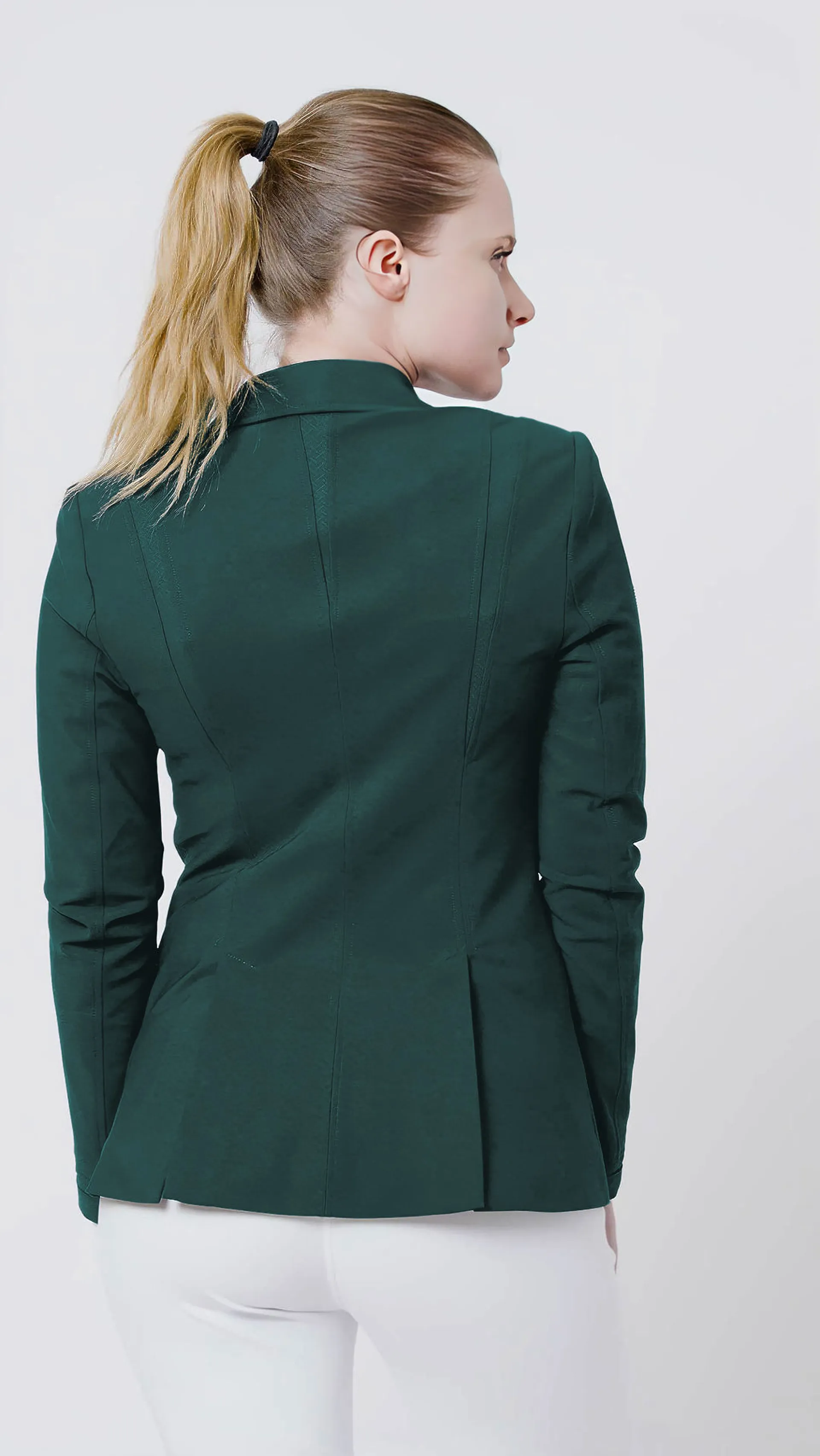 Designed on a longer base, the Deltalix Competition Jacket is perfect for taller riders. Tailored fabric panels across the back and shoulders give a stylish and sporty feel to this jacket, whilst the tone on tone finishes complete the design. Mesh lined for breathability, with four way stretch fabric for unparalleled rider comfort and performance.