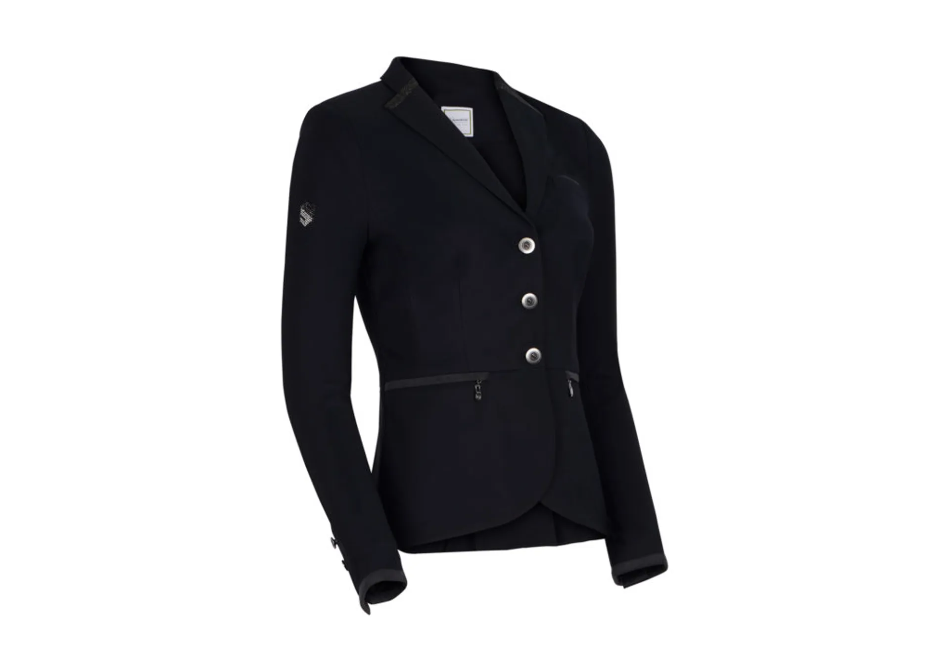 The Victorine Crystal Fabric competition jacket is designed to provide comfort and technical performance to riders.