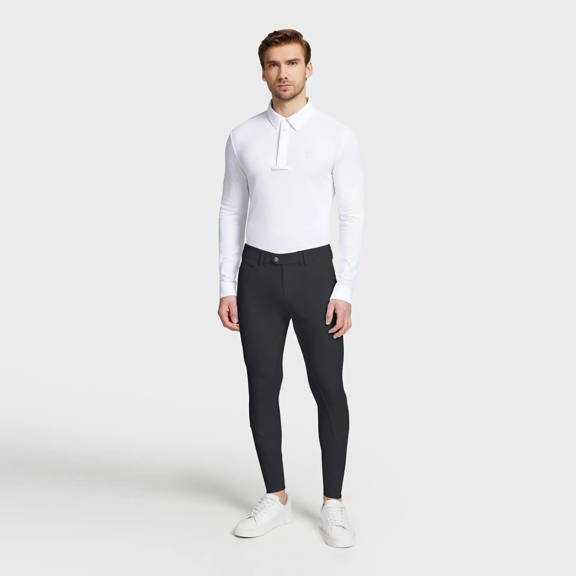 The Marceau/ Edouard Matt breeches are made from a breathable, quick drying Italian fabric that has 4 way stretch for optimum freedom of movement, whilst a six layer grip gives excellent stability in the saddle. Full working pockets at the front and back with classic matt finishes and embroidered Samshield logo add seamless practicality and style. Exceptional details like zippered pockets with zip stop technology and subtle logo accents add to the polished aesthetic. With a perfect harmony of innovation and elegance, the Samshield Marceau Breeches cater to riders who seek an unmatchable blend of performance and fashion-forward design. Easy care, machine washable at 30'C Composition Fabric 1: 72%PA/28%EA Composition Fabric 2: 59%PA/41%EA
