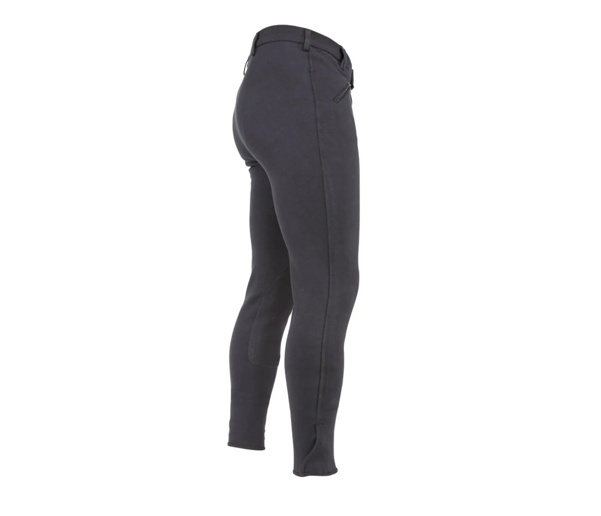 SaddleHugger breeches benefit from Creora® 4-way stretch knitted fabric for a super fit, generously cut with a flat front, belt loops, self-fabric knee strappings and touch close leg fastenings.
