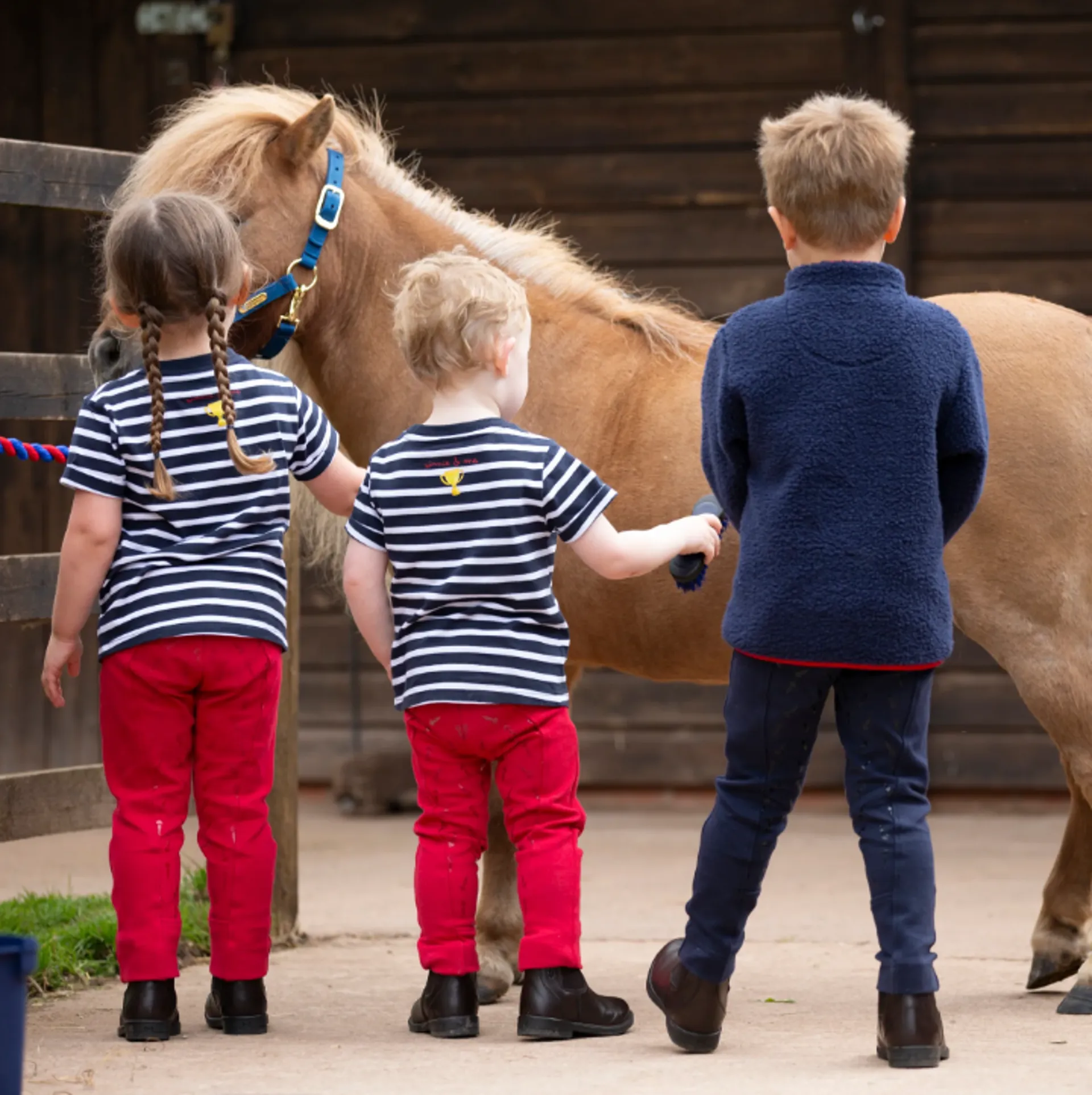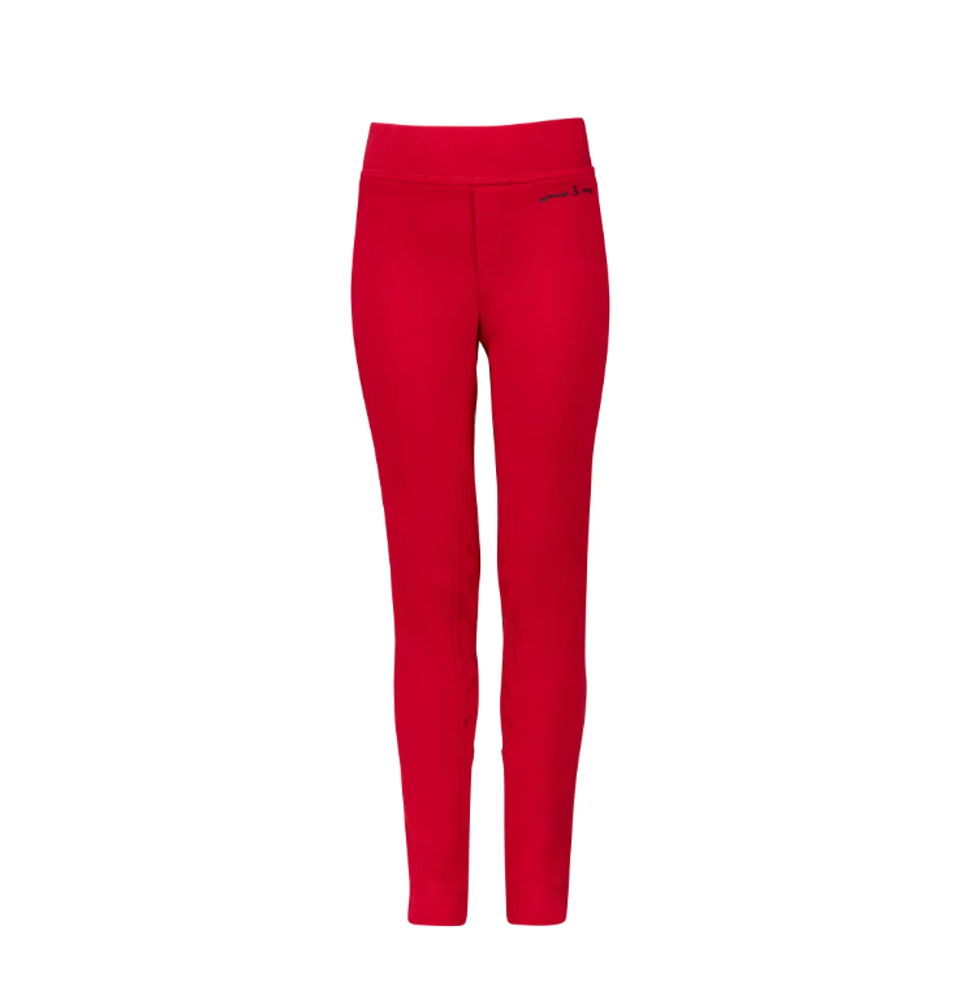 Pull-on jodhpurs with a mock fly detail and grippy silicone prints at the seat and inner legs for extra confidence in the saddle. Featuring Winnie's carrot pony treat designs. Made in a durable cotton knit with plenty of stretchy comfort. Extra detail: mock fly, Winnie & Me prints.