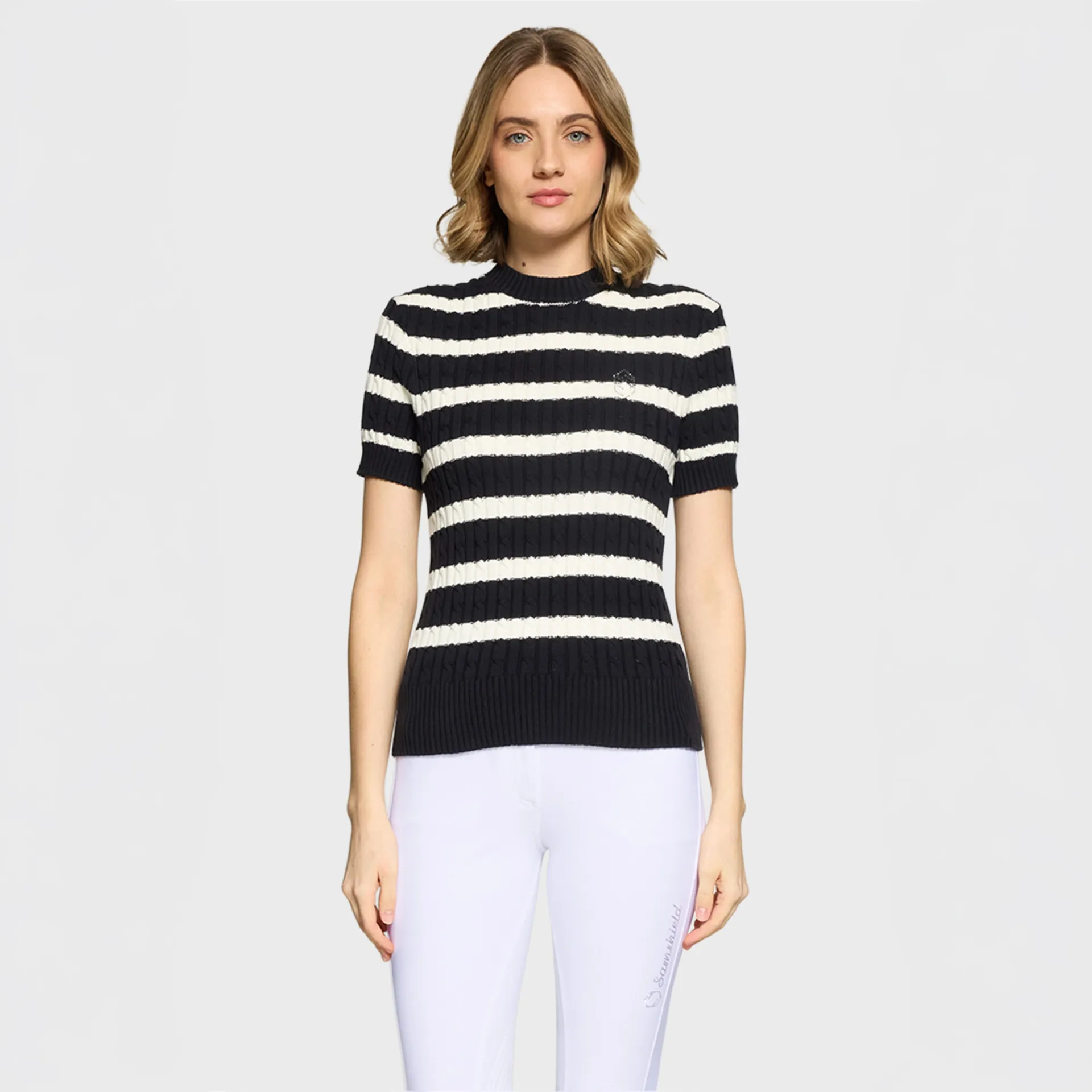 The ribbed finishes on the collar, bottom and sleeves structure the piece with precision. On the front, the Swarovski crystal blazon is a discreet touch of light. Designed as a premium essential, the Lidy accompanies the rider with simplicity and refinement, in the stable as well as in everyday life.