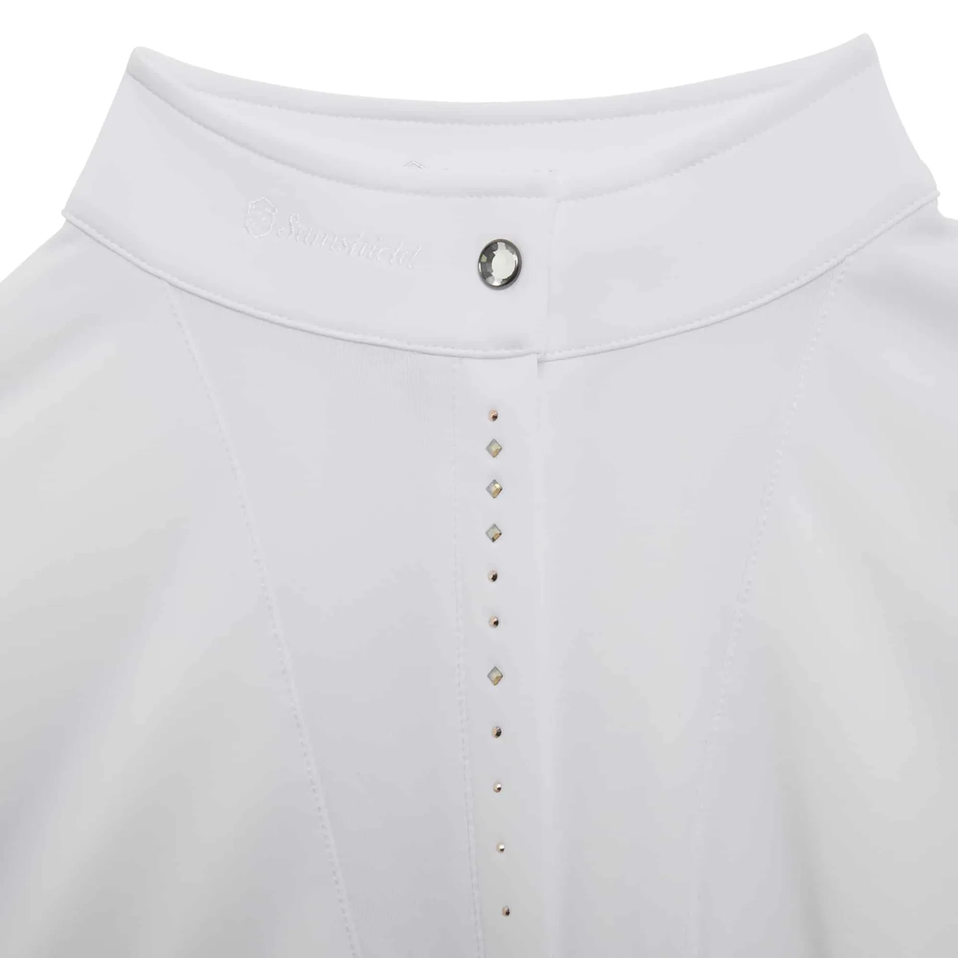 The Apollina Crystal short sleeve shirt features a traditional bib, decorated with a row of Swarovski® crystals above the concealed frontal zip.
