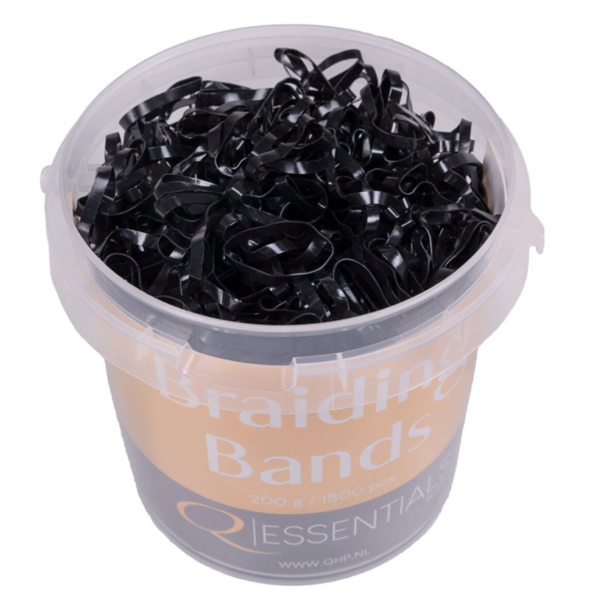 Wide extra strong rubber bands for braiding. Comes in a resealable bucket with clever handle. Approximately 1800 pieces per bucket.