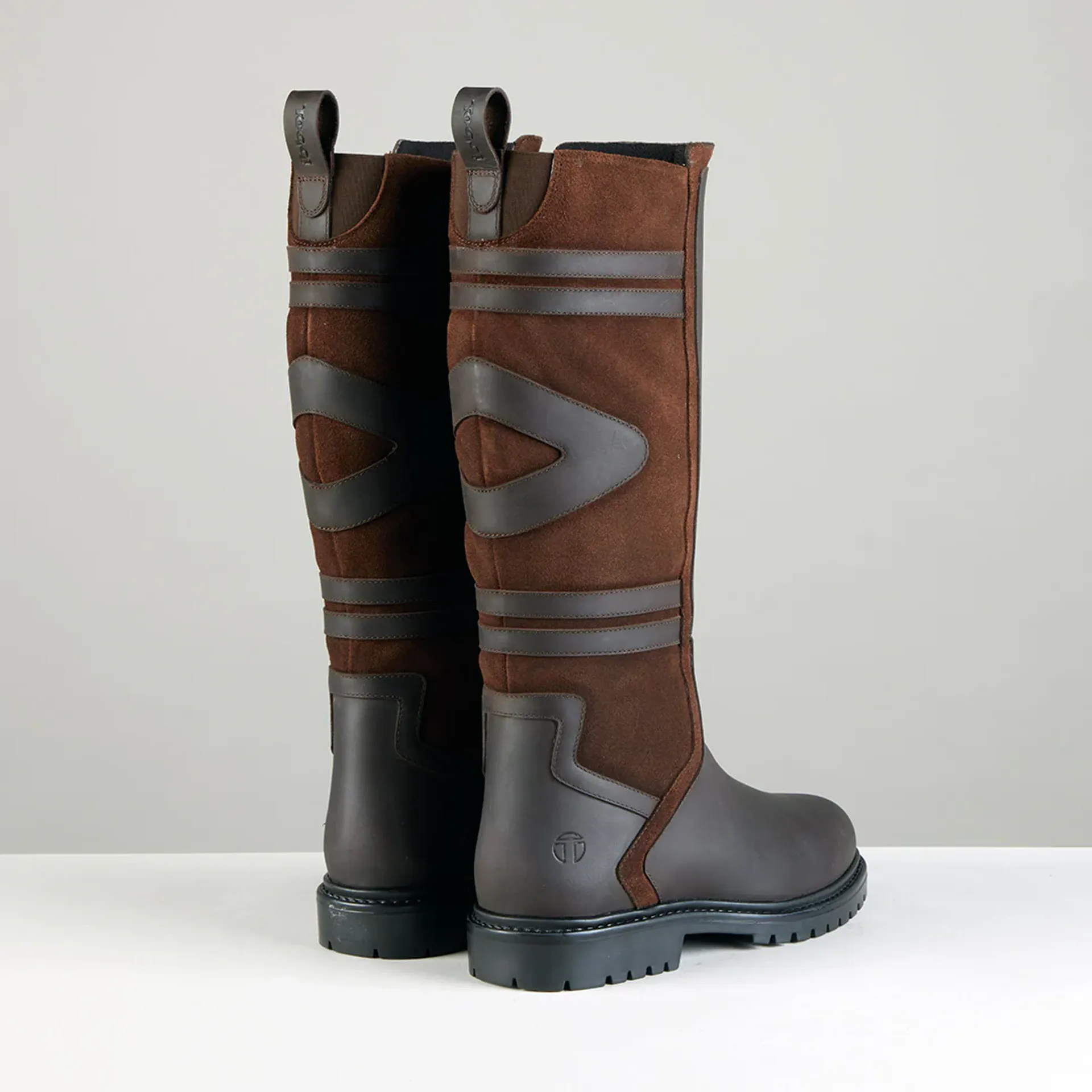 The Toggi Underwood Country Boots are crafted using a premium leather and suede upper combination with a hydrogarum lining, providing a waterproof and breathable boot for all-year round comfort. The deep brown leather details against the rich chocolate suede give the boots a distinguishable yet traditional style. Featuring a gold YKK zip on the inner for ease, the Underwood boots are complete with a matching gold Toggi logo at the front of the boot. With a thick tread providing comfort and grip, these country boots are both aesthetic and practical. Available in regular and wide calf fitting.