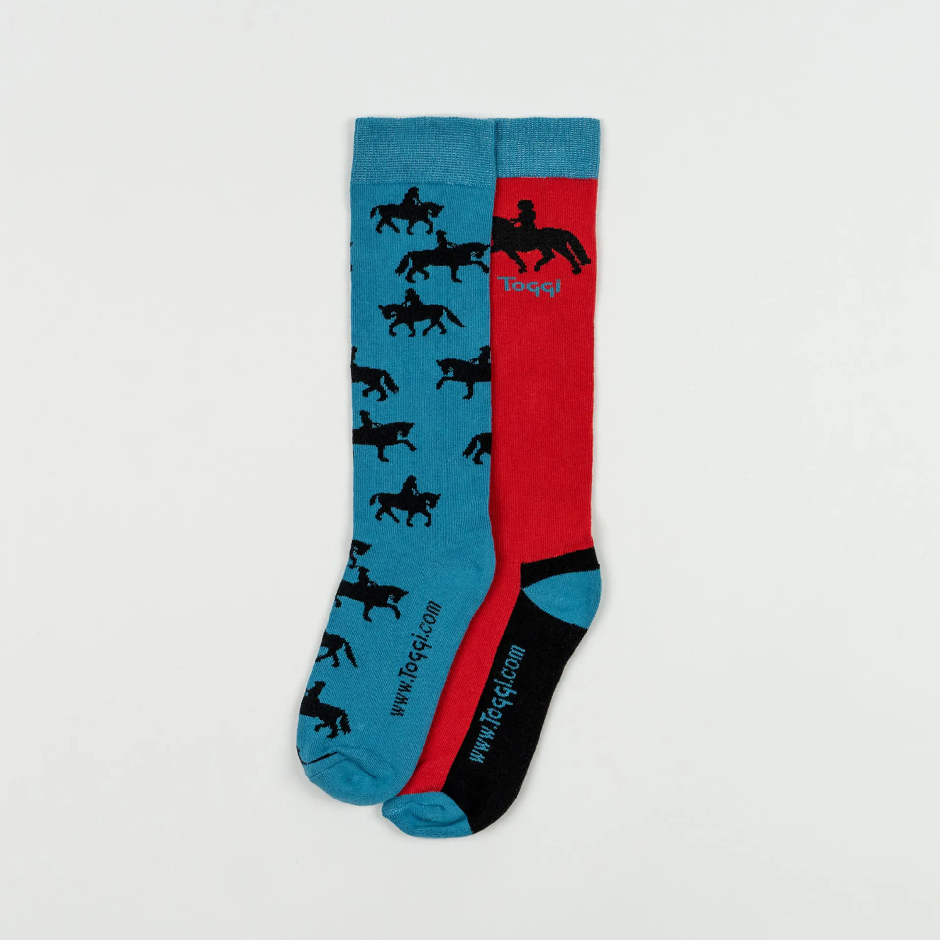 Toggi Womens Rider Silhouette Socks 2pk Blue/Red