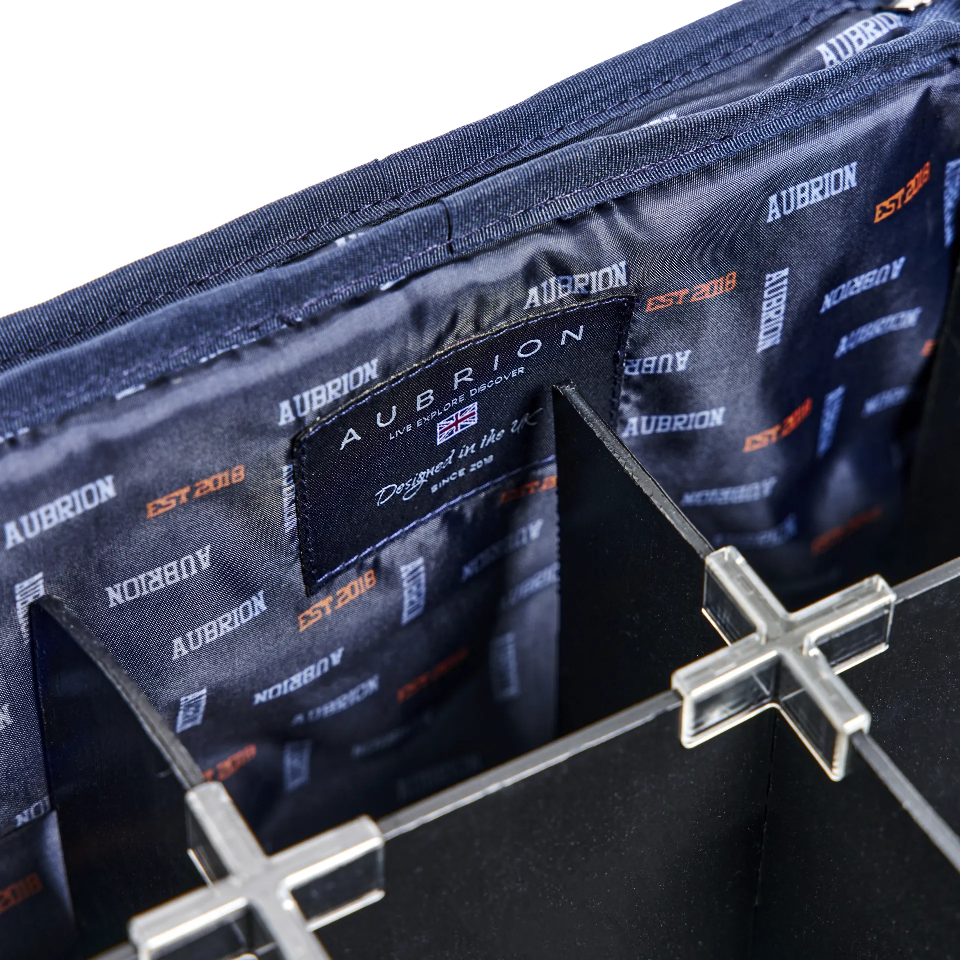 The Aubrion Equipt grooming kit bag keeps your kit organised and easy to access. The zip opening bag features an inner eight part divider, ideal for transporting bottles and keeping everything quick to find. A mesh ventilation panel keeps the air flowing for freshness. Further detail: two padded handles, hardwearing feet, Aubrion prints. Dimensions: W.34cm, D.15cm, H.26cm. Part of the smart Aubrion Equipt luggage range.