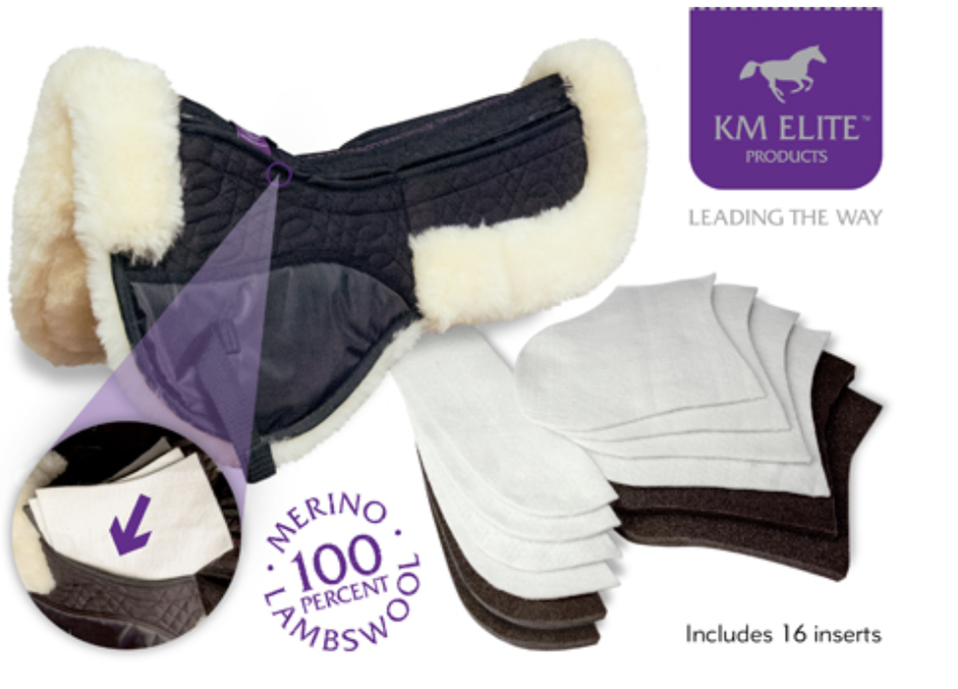 The new pad has4 pockets with Velcro fasteningsat the front and back on either side. The pocketscan then be filled with interchangeable insertsto allow the rider to peronalise the pad tosuit their own saddle and horses body shape.