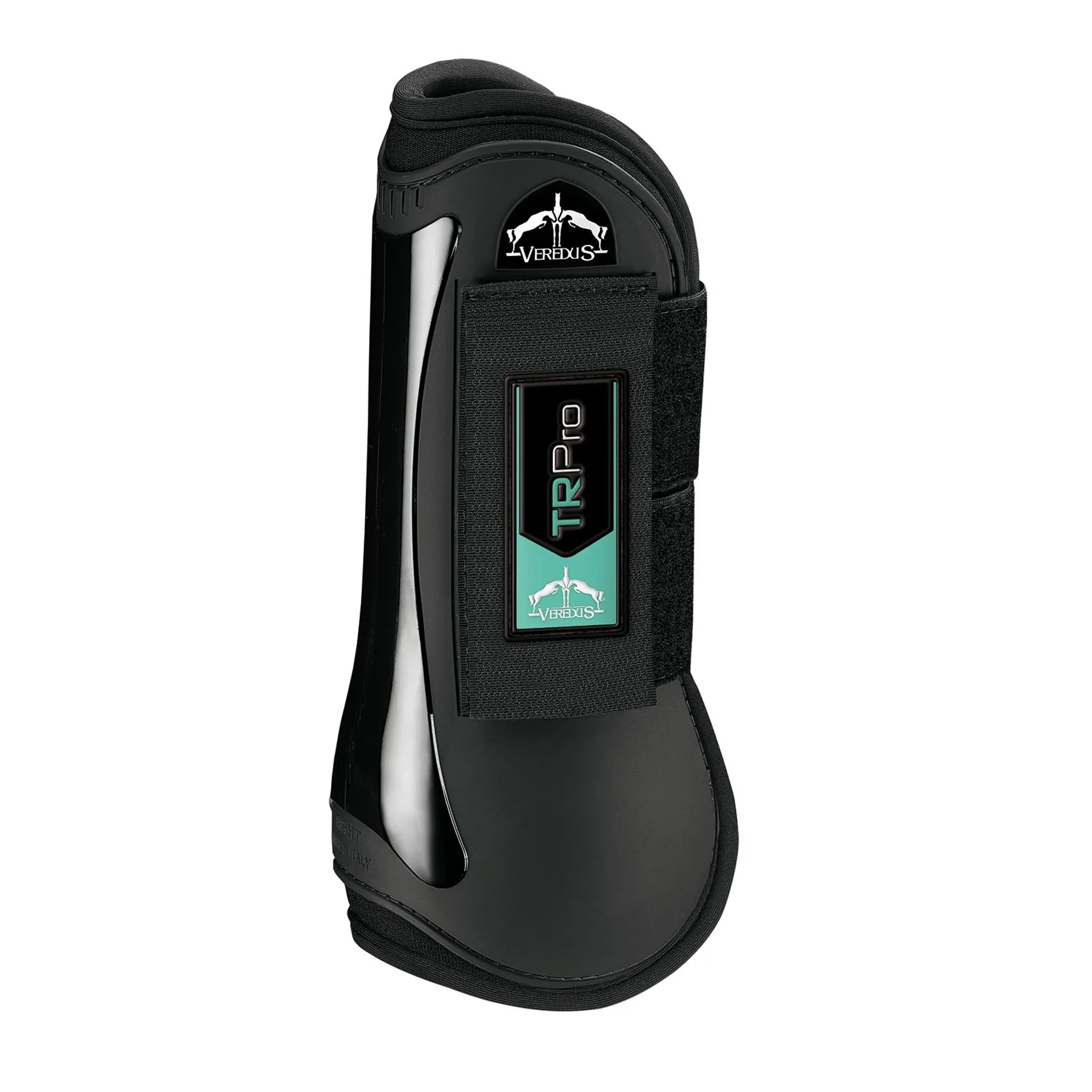 Open front tendon boot in neoprene coupled with Lycra, with strike pad in POLYFLEX (elastic polyurethane) equipped with two elastic straps and double velcro safety fastening.