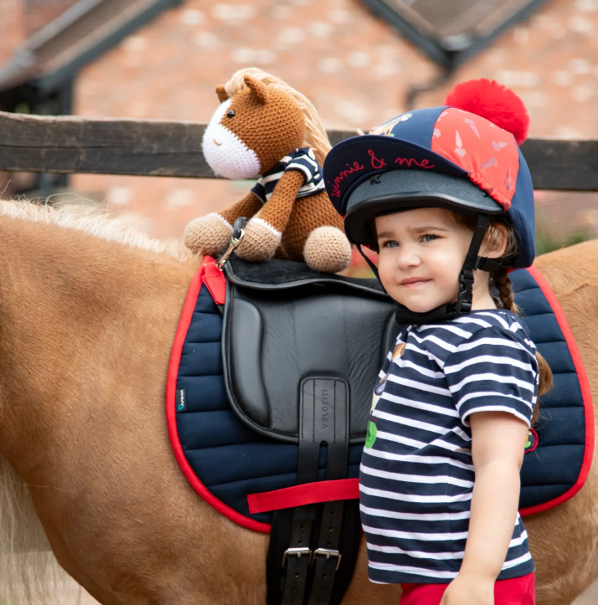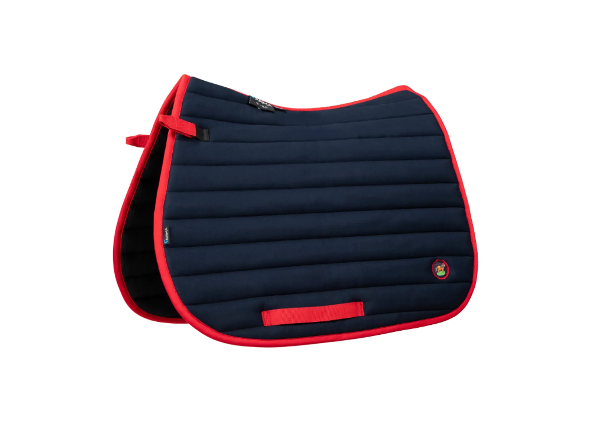 A comfortable channel quilt saddlecloth with contrast binding and trims. Featuring a Signature Winnie badge to coordinate with the Winnie & Me pony character clothing range. Designed in soft fabrics with a moisture wicking ULTRA DRI ZONE lining. Extra detail: short elastic insert D-ring straps, girth loops, soft durable fabrics, embroidered spine tape, Winnie & Me detailing.