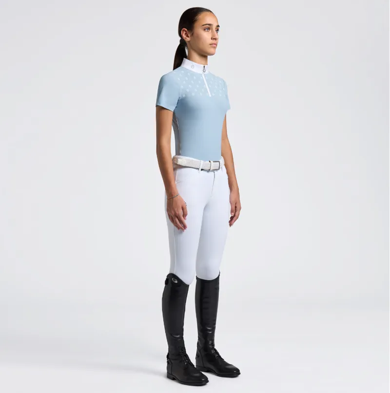 Cavalleria Toscana Girls Short-Sleeve Competition Shirt with CT Logo Print Blue Fog