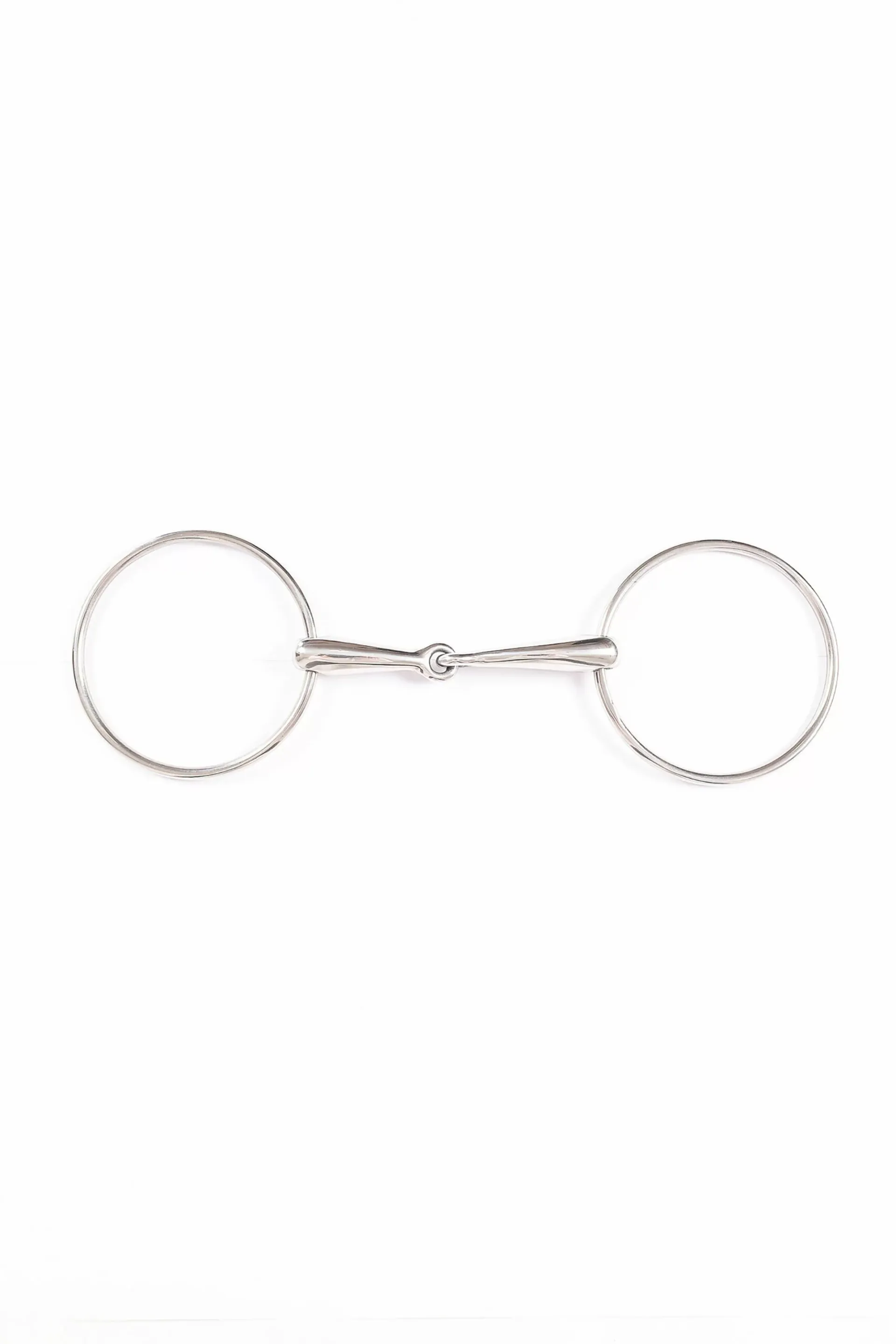 This loose ring bit is a single jointed hollow mouthed snaffle. It features large 4 inch diameter loose rings that can assist control of horses tending to “lean” on the bit.