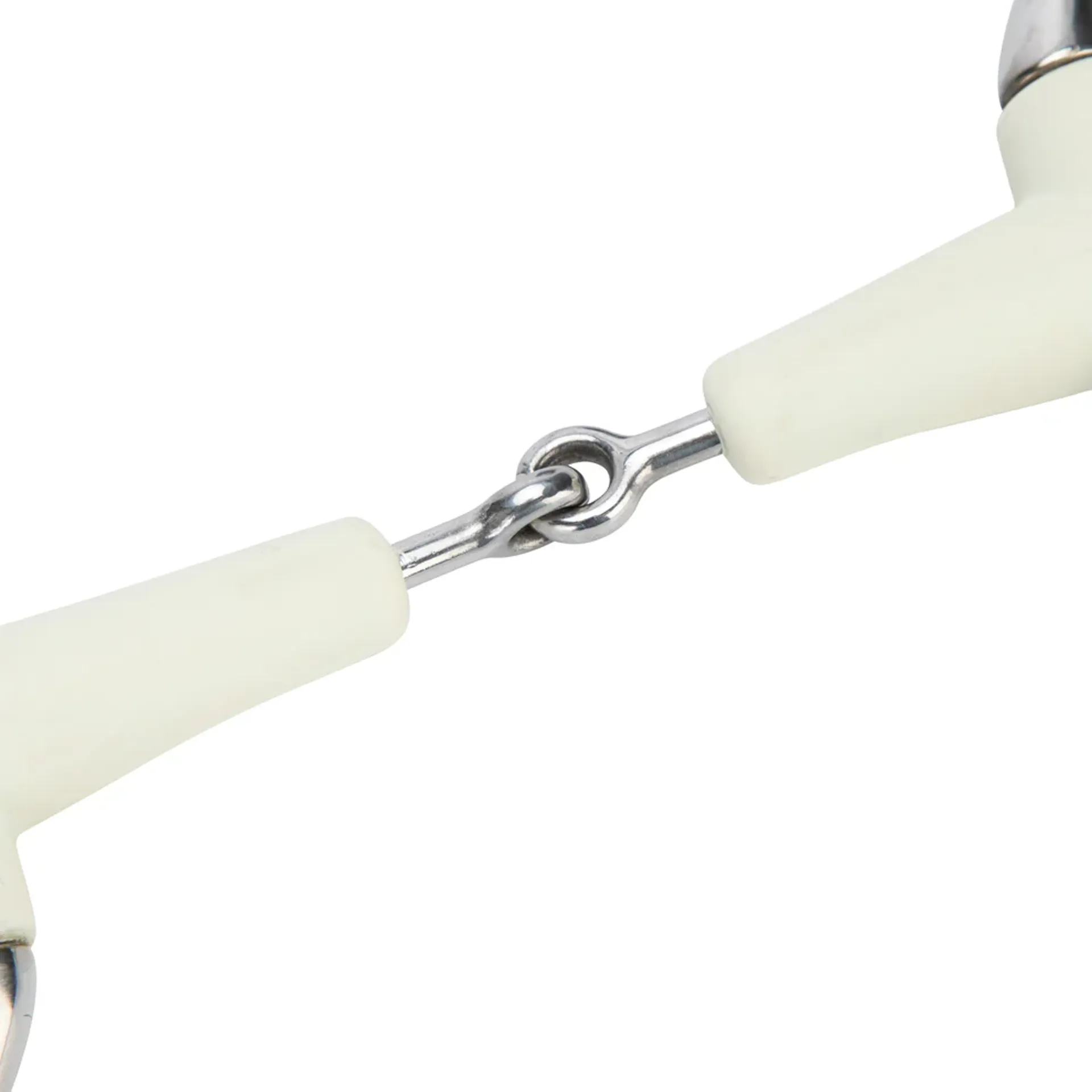 The EquiKind Softie jointed flat eggbutt features a soft-touch coating that's gentle on the horse’s mouth, fixed rings prevent pinching. Mouthpiece thickness: 18mm. Cheek height: 73mm. Stainless steel with EquiKind oftie coating, offers a soft-touch lightweight mouthpiece that warms quickly to the horse's mouth. The supple mouthpiece is kinder, ideal for young horses or those who reject metal.