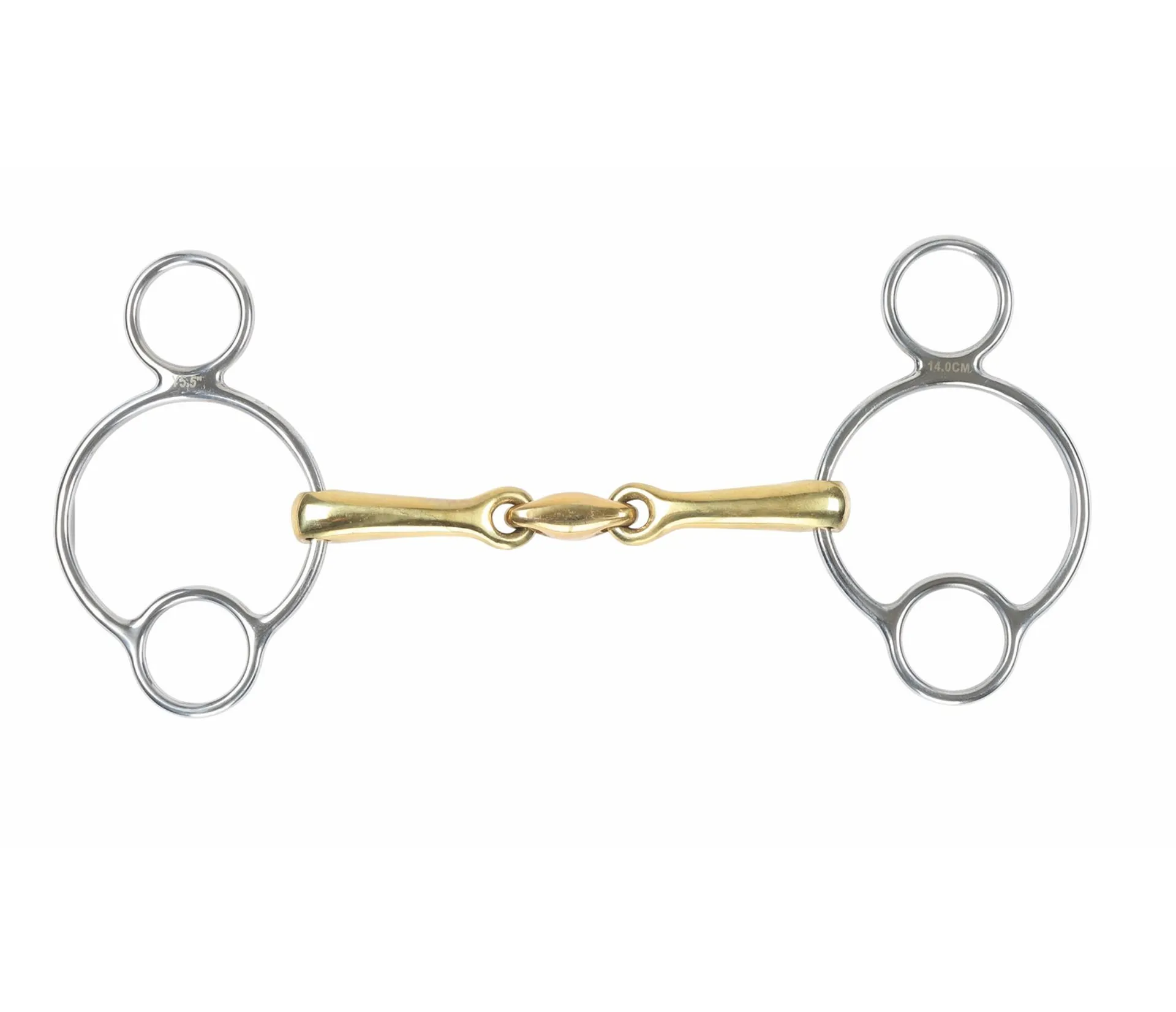 Combines poll pressure and leverage for a mild gag action. Brass alloy assists with salivation. Mouthpiece thickness: 14mm. Cheek height: 115mm (4.5, 5), 130mm (5.5, 6). Brass alloy mouth: Copper is alloyed with a harder metal to produce warm, durable mouthpieces which aid salivation. Stainless steel is used for the cheeks due to it being durable, easy to clean and resistance to rust.