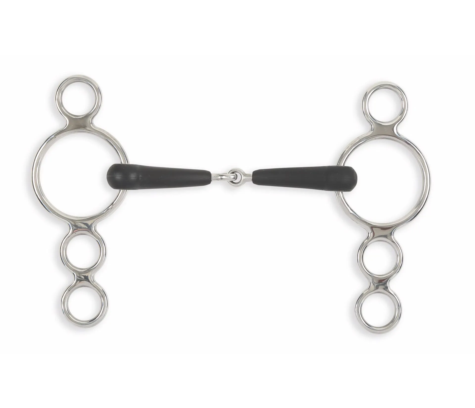This bit is useful when control is an issue with the three rings offering leverage options to increase the severity. The 5 and smaller sizes of this bit have smaller rings to ensure the bit remains in proportion.