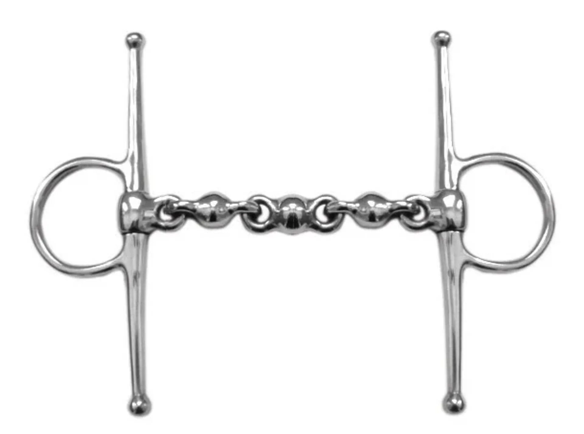 This bit has full cheeks to help with steering and a mouthpiece made up of many different links to make it harder for the horse to pull or lean against it. Mouthpiece thickness: 18mm. Cheek height: 165mm. Stainless steel is the most common material for bits. Durable, easy to clean, tasteless and does not rust.