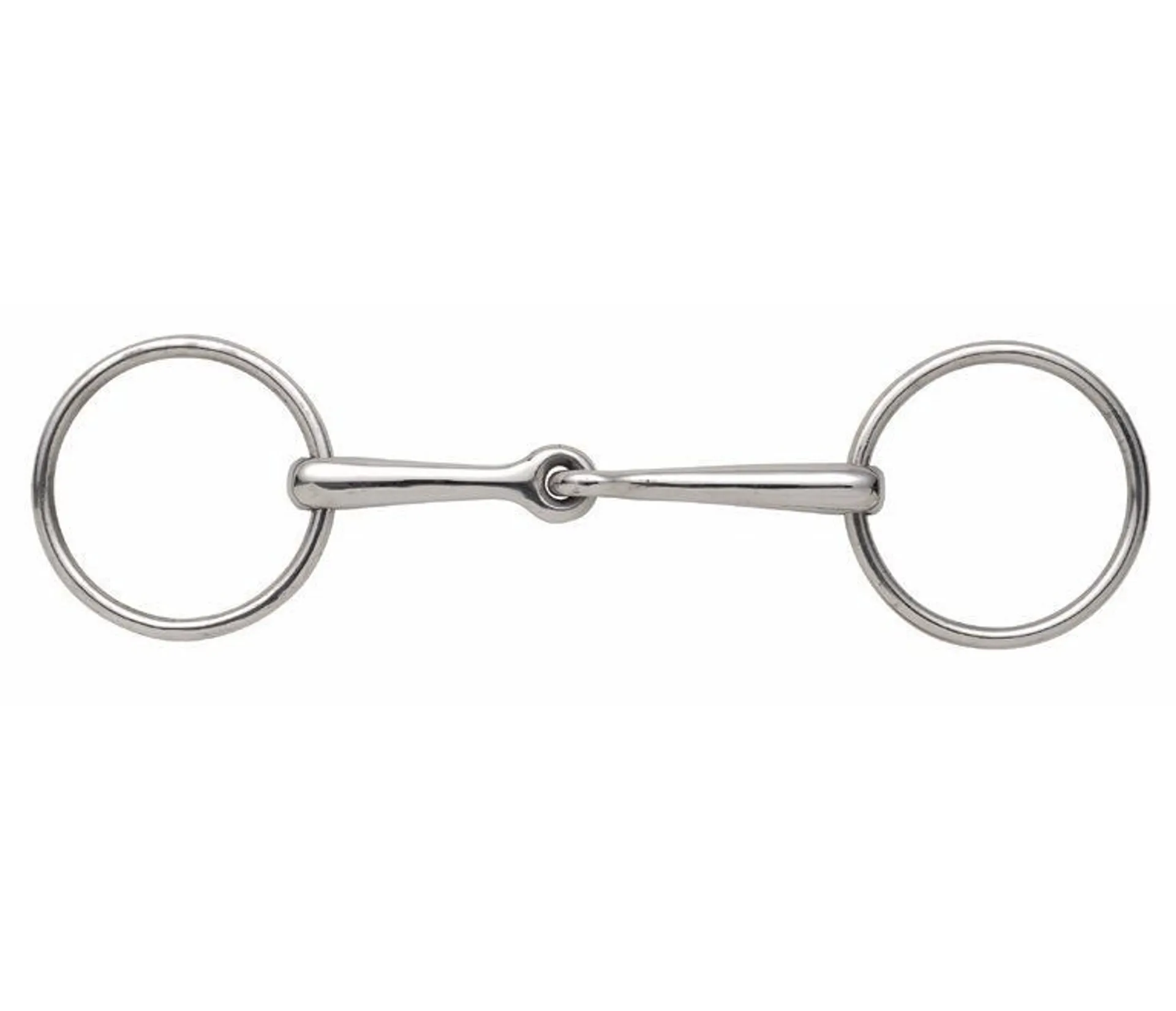This is a basic jointed mouth snaffle with loose rings to allow more movement in the horses mouth.