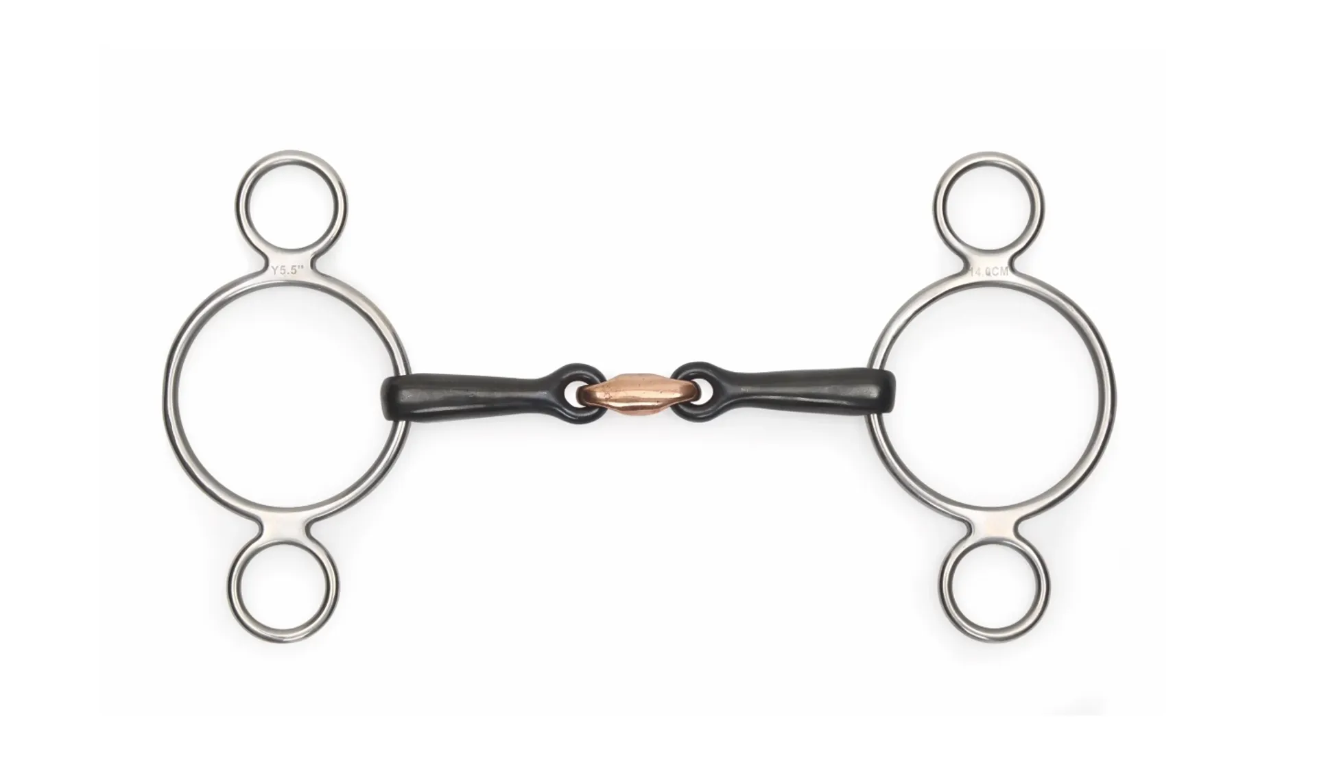 Moving the rein between the main ring and bottom ring allows leverage. Sweet iron and copper encourages the horse to be softer in the mouth. The 5" and smaller sizes of this bit have smaller rings to ensure the two ring gag bit remains in proportion. Mouthpiece thickness: 16mm. Cheek height: 115mm (4.5", 5"), 145mm (5.5", 6"). Sweet iron mouthpieces are designed to oxidize to produce a sweet taste which helps with mouthing. The addition of copper to the mouth ensures the horse will not take up too much of a contact, ideal for horses that can take a hold. Stainless steel is used for the cheeks due to it being durable, easy to clean and resistance to rust.