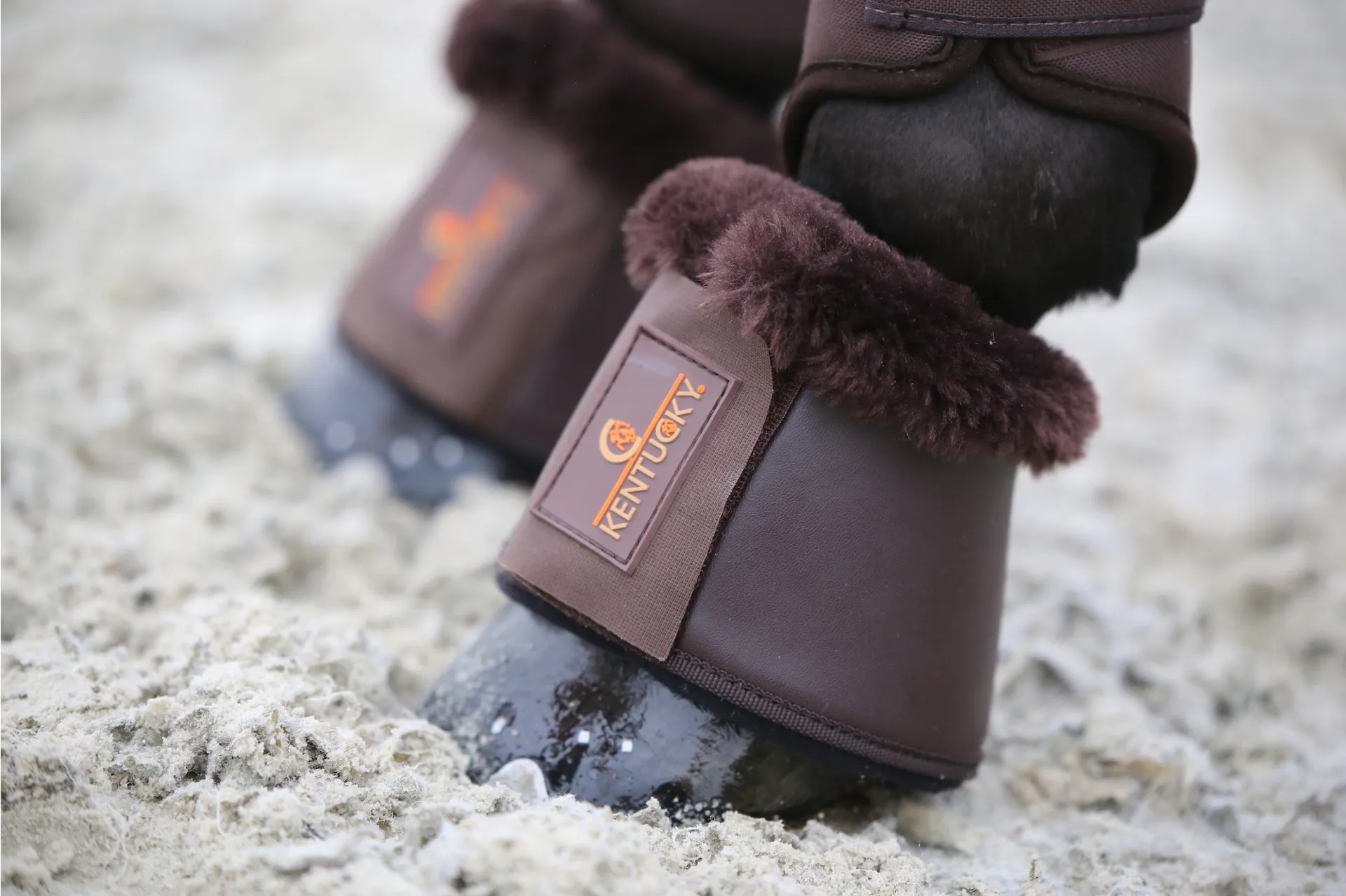 They are made out of artificial leather and artificial sheepskin making them 100% animal-friendly and easy to maintain as they can be washed in the washing machine at 30°, no dryer. Kentucky Horsewear developed a Tack Cleaner to clean our artificial leather. Very easy and efficient! The artificial leather doesn’t take in any dirt, sweat or water and is therefore very durable! It does not change color and doesn’t get damaged easily.