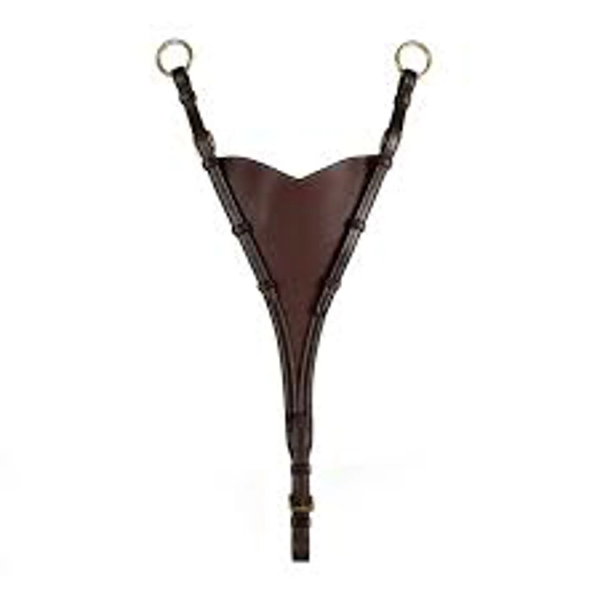 Adjustable full bib martingale made of soft Dy’on leather.Attaches to a yoke or breastplate by means of a roller buckle