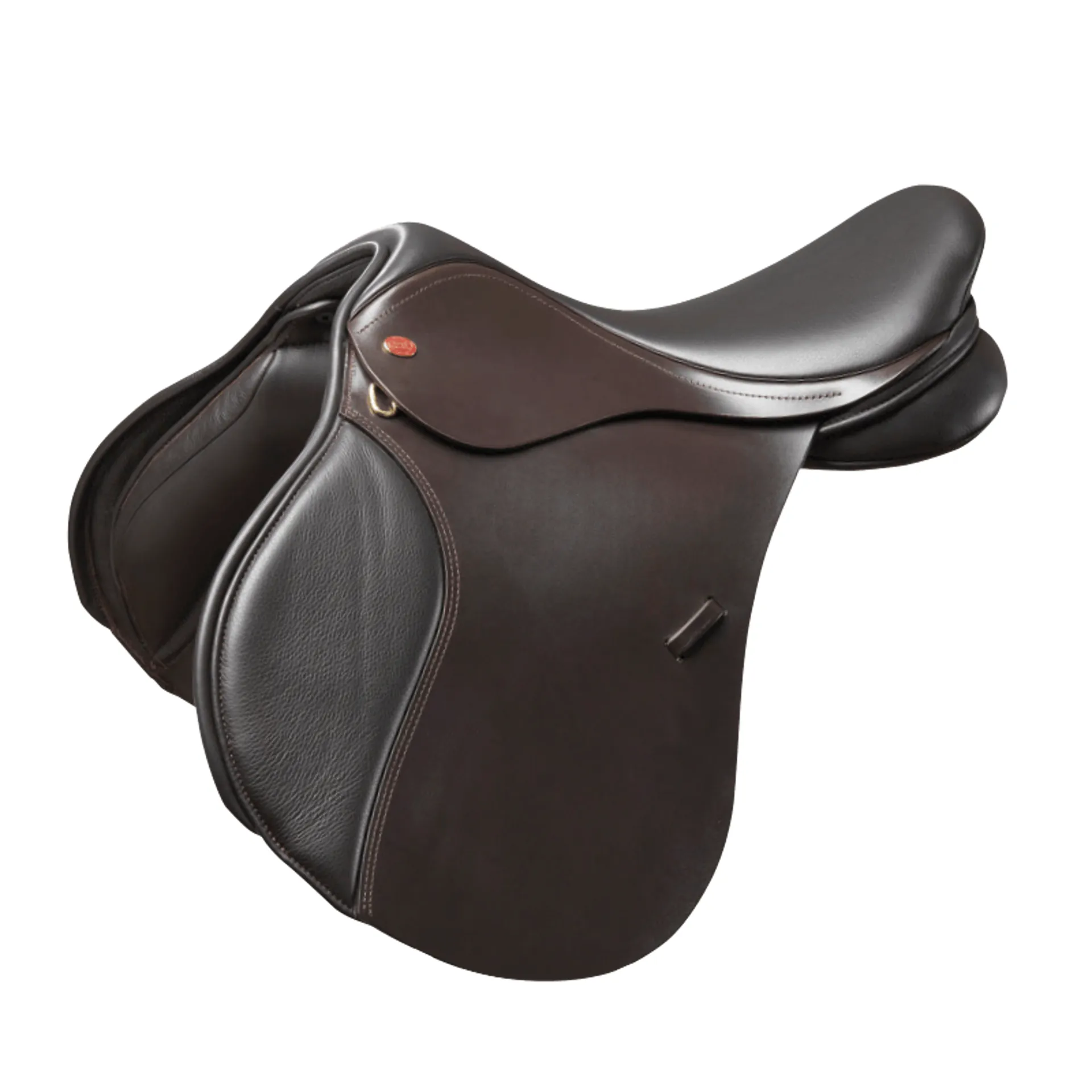 • The flap is cut forward in front of the point of the rider’s knee to accommodate a leggy teenager or adult pony rider.
