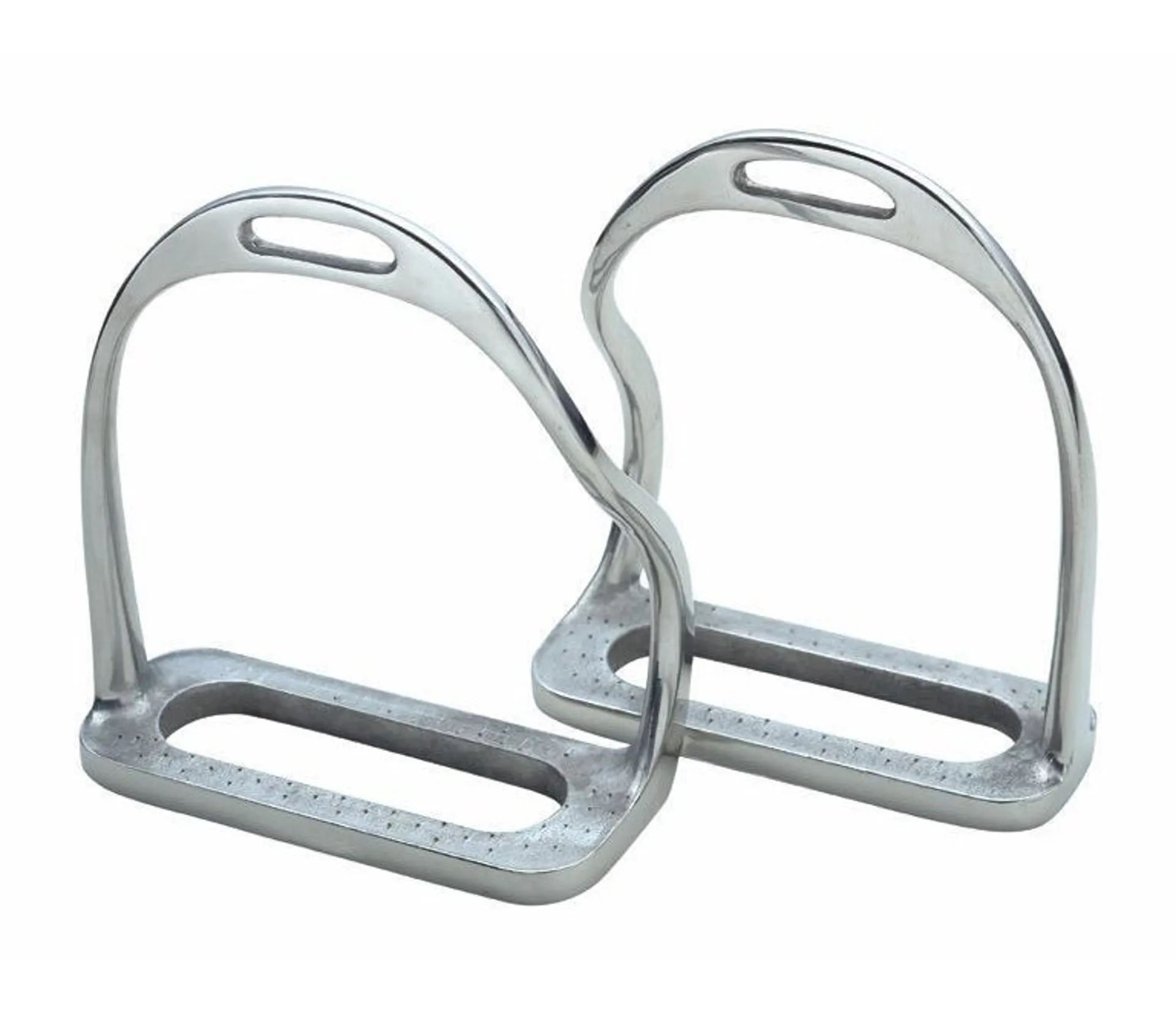 These bent leg stirrup irons have been designed to help prevent the foot becoming caught in the stirrup in the event of a fall.